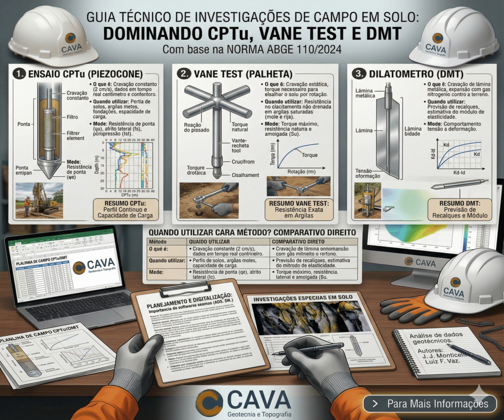 CPTu, Vane Test e DMT: diferenças, aplicações e quando usar